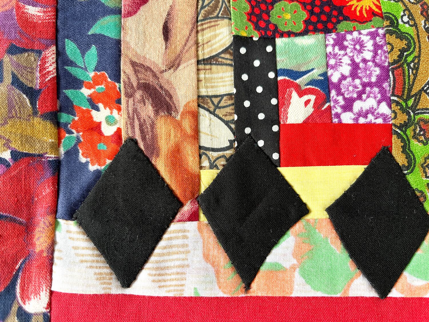 パッチワークは片面のみ/裏面はUSSR時代のヴィンテージプリント生地
