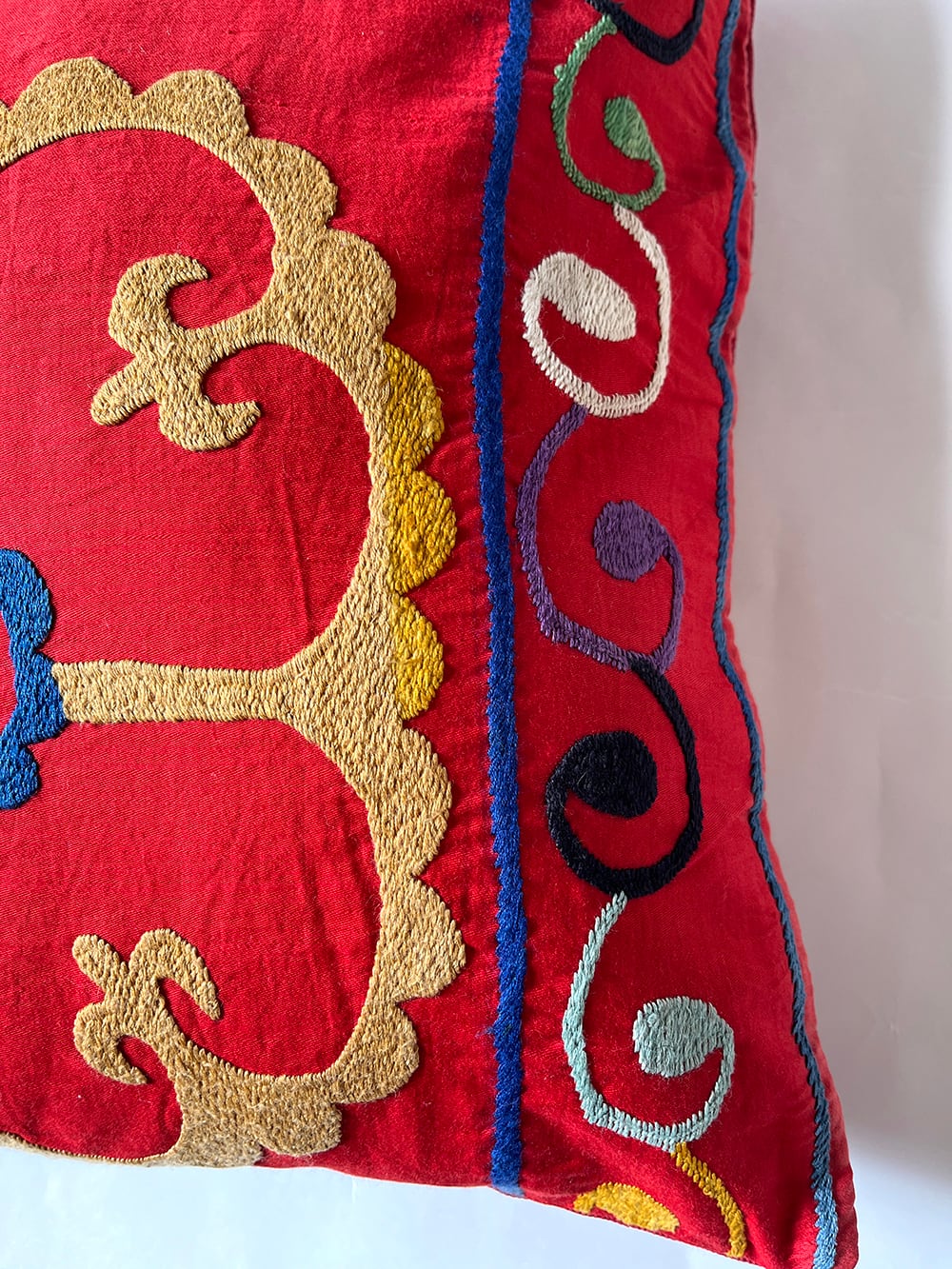 ヴィンテージスザニのため刺繍糸の色うつりや下書きのあとなどが少しみられます。