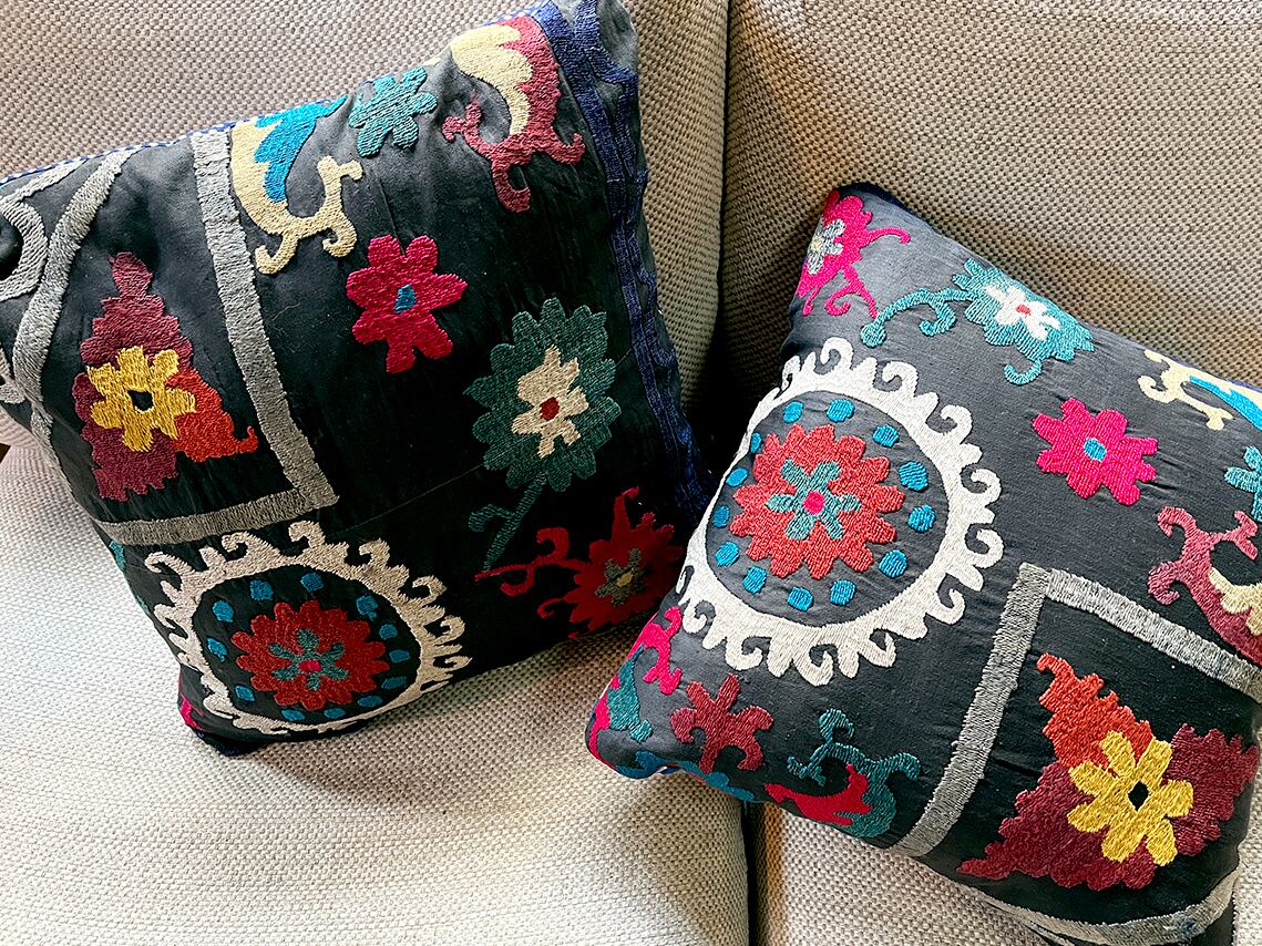 ビンテージスザニのため刺繍糸の色うつりや下書きのあとなどが少しみられます。