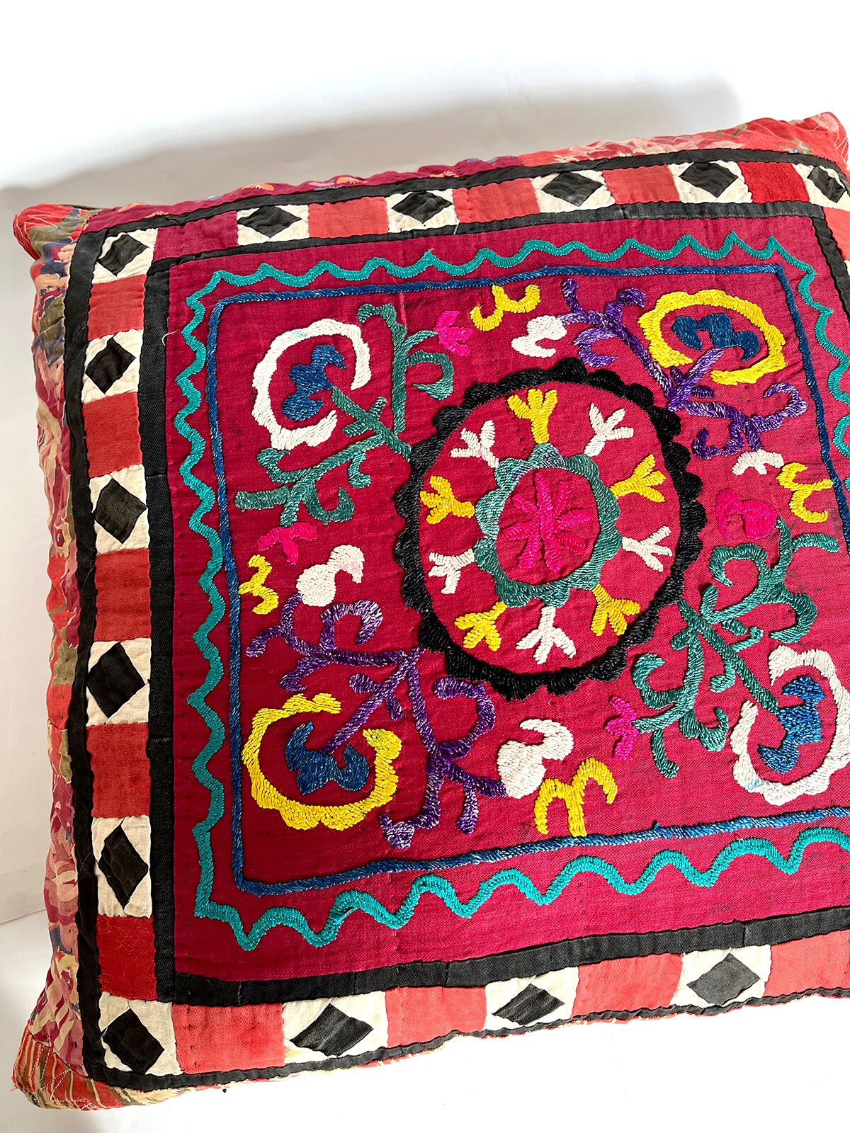 大きめのクッションカバーです。スザニとパッチワーク、ビンテージコットン柄がとてもチャーミング!