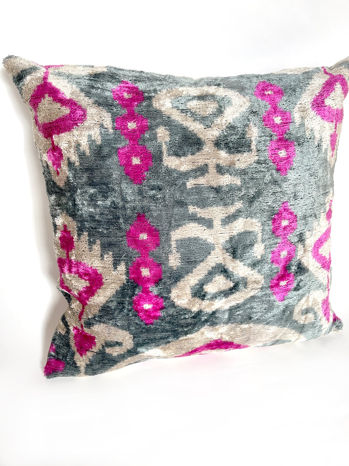ウズベキスタンの伝統的織物 バクマルとは絣と同じ手法で手織りされたシルクのベルベット生地です。